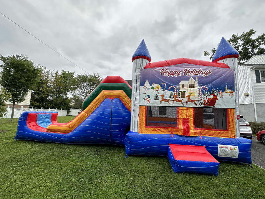 This unique combo can be easily transformed into a themed bounce house, making it a standout feature at your event. With fall and holiday themed banners available, you can customize the Super Marble Castle Combo to suit any seasonal celebration.