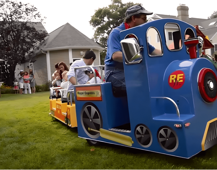 Our Jr. Trackless Train is a state-of-the-art ride that combines the charm of a traditional train with the convenience of being trackless. This means that it can be set up and operated on both grass and concrete, making it a versatile choice for a variety of events, including birthday parties, carnivals, corporate events, and more.