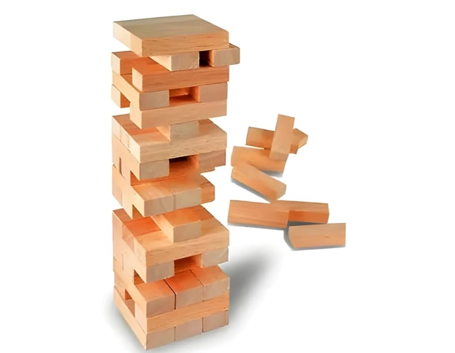 Giant Jenga starts as a tower that stands nearly 22 inches tall. Players take turns carefully removing one block at a time from the tower and then balancing it on top. As the game progresses, the tower becomes taller and more unstable, making each move more nerve-wracking than the last. The goal is to keep the tower standing as long as possible without it toppling over.